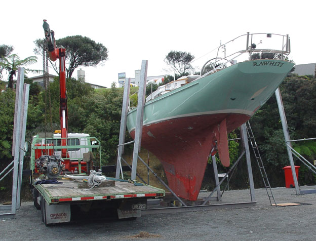 On the hard at Westpark Marina awaiting transportation