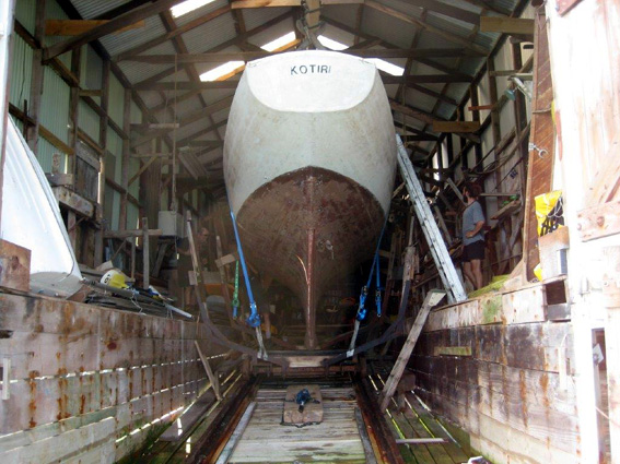Preparing to lower boat part way down damaged haulway at Herne Bay