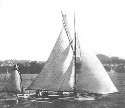 'Ladye Wilma' with her first gaff yawl rig sailing on Auckland Harbour 1897