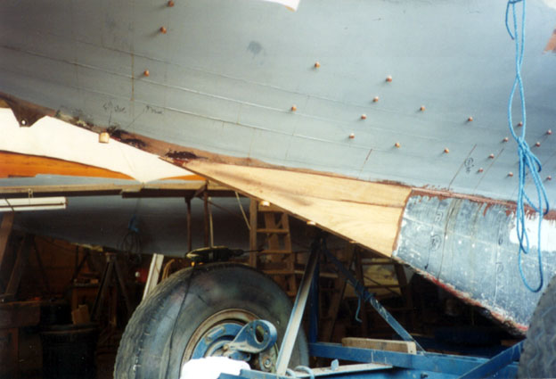 Forward deadwood set in place. All screws and fastenings are wood plugged and then trimmed off