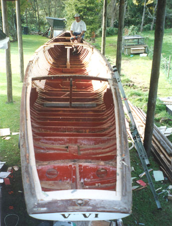 With the roof now on the partly constructed boatshed, the deck and most of the deck beams are cut out