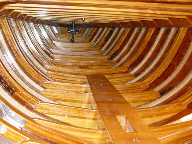 Inside looking forward. Note mast step, internal chainplates and internal jib furling gear