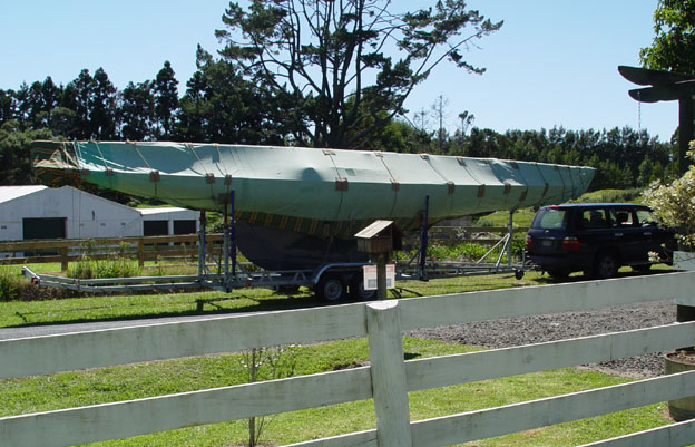All wrapped up ready for the first part of her journey to the Auckland 'Americas Cup' base