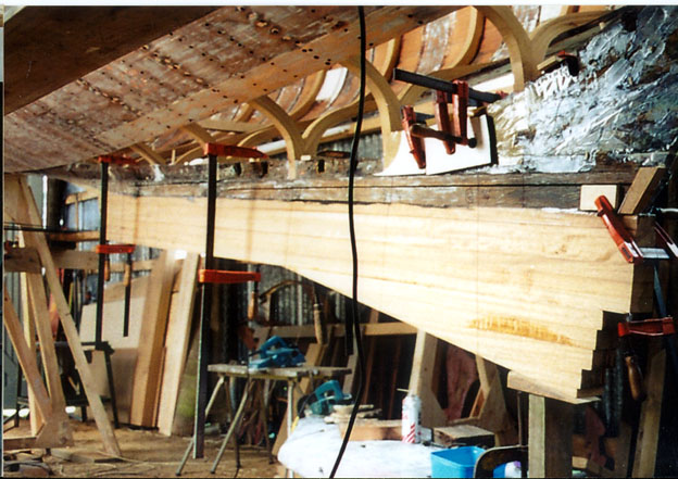 The new deadwood is being set up and laminated into position