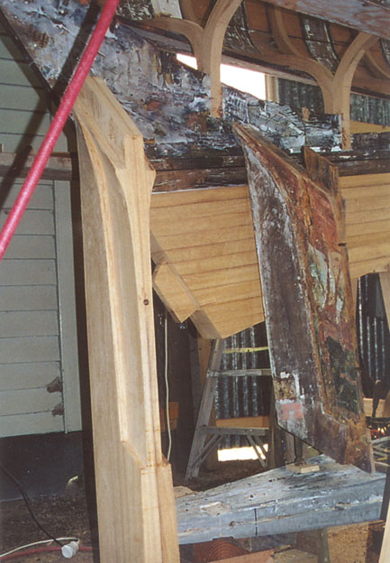 The deadwood is now shaped in and a new sternpost is made ready to fit (note the old sternpost to the right)