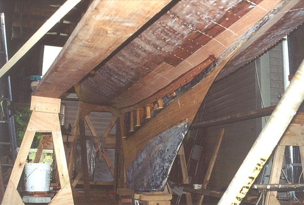 Starboard view showing new planking in the bilge area