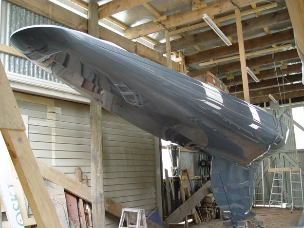 Starboardside view of the painted 'Vivi' hull