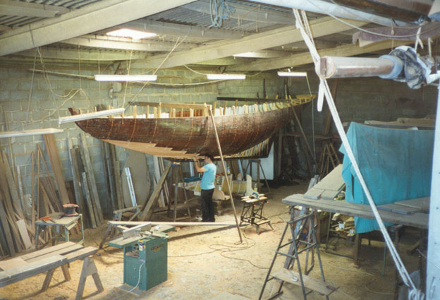 The keel has been dropped and new planks are being fitted