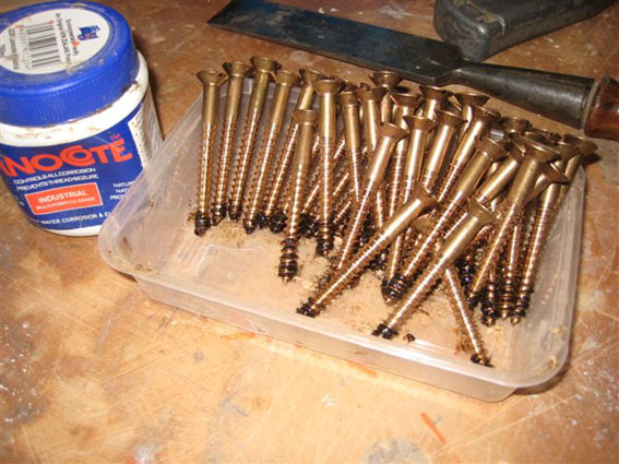 The planking is fixed with bronze screws coated in 'Lanocote'